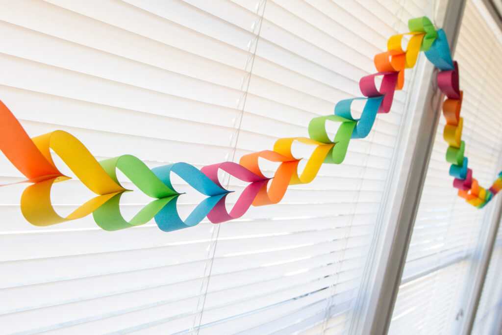 Для придания празднику семейного оттенка подойдут картонные кружки с наклеенными фотографиями. Чтобы привнести игривые нотки декору, можно наклеивать детские фото на красные бумажные кружки, а взрослые – на синие.