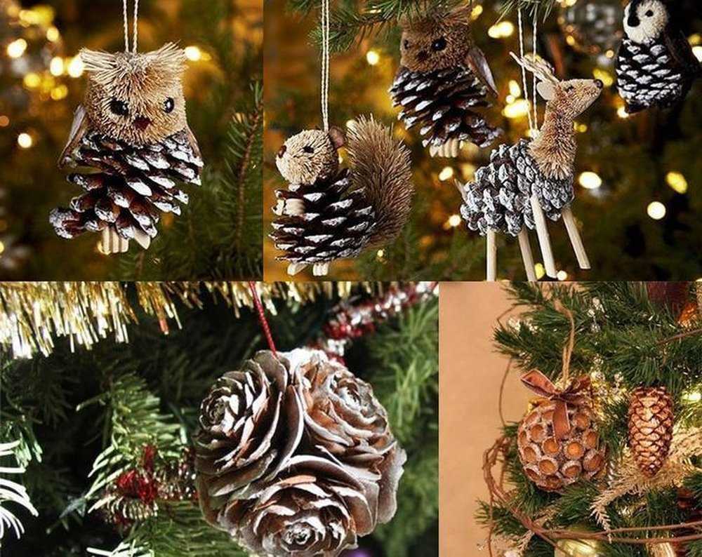 Традиционный элемент украшения зеленой красавицы – разнообразные шишки. Их декорируют несколькими способами: