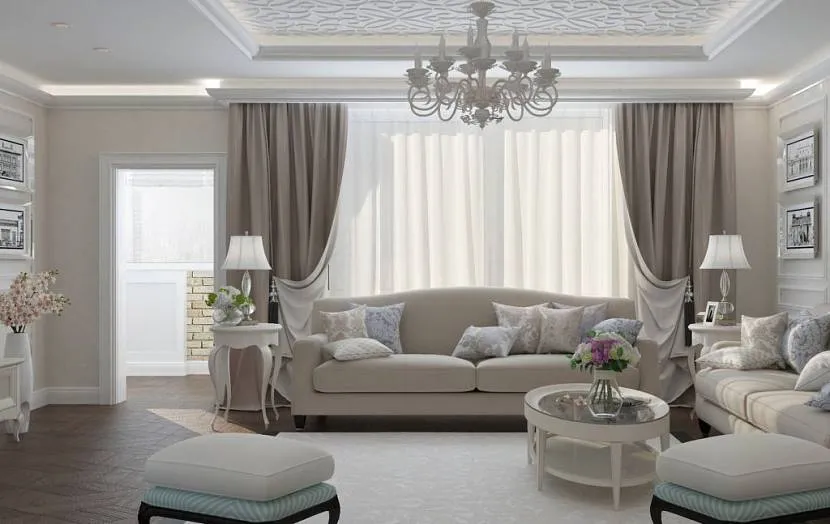 Стиль неоклассицизм приближен к традиционной, привычной классике. Плавные линии мебели, легкий занавес из полупрозрачной ткани, правильное освещение — все, что нужно для гостиной с стиле неоклассика.