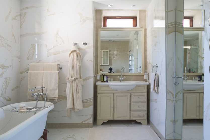 Ванная в неоклассике: варианты отделки плиткой и керамогранитом