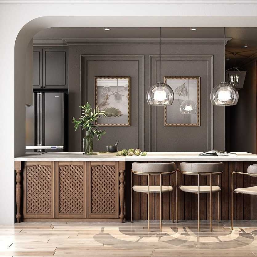 На фото дизайн малогабаритной кухни, выполненный в стиле неоклассика.