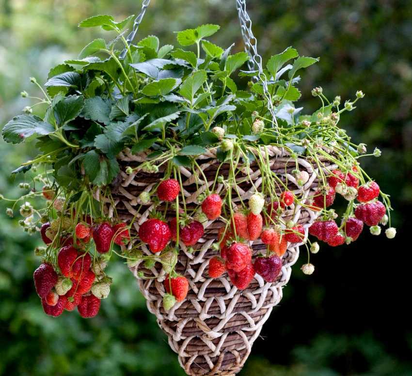 Высаживать в подвесные кашпо можно не только цветы, но и клубнику