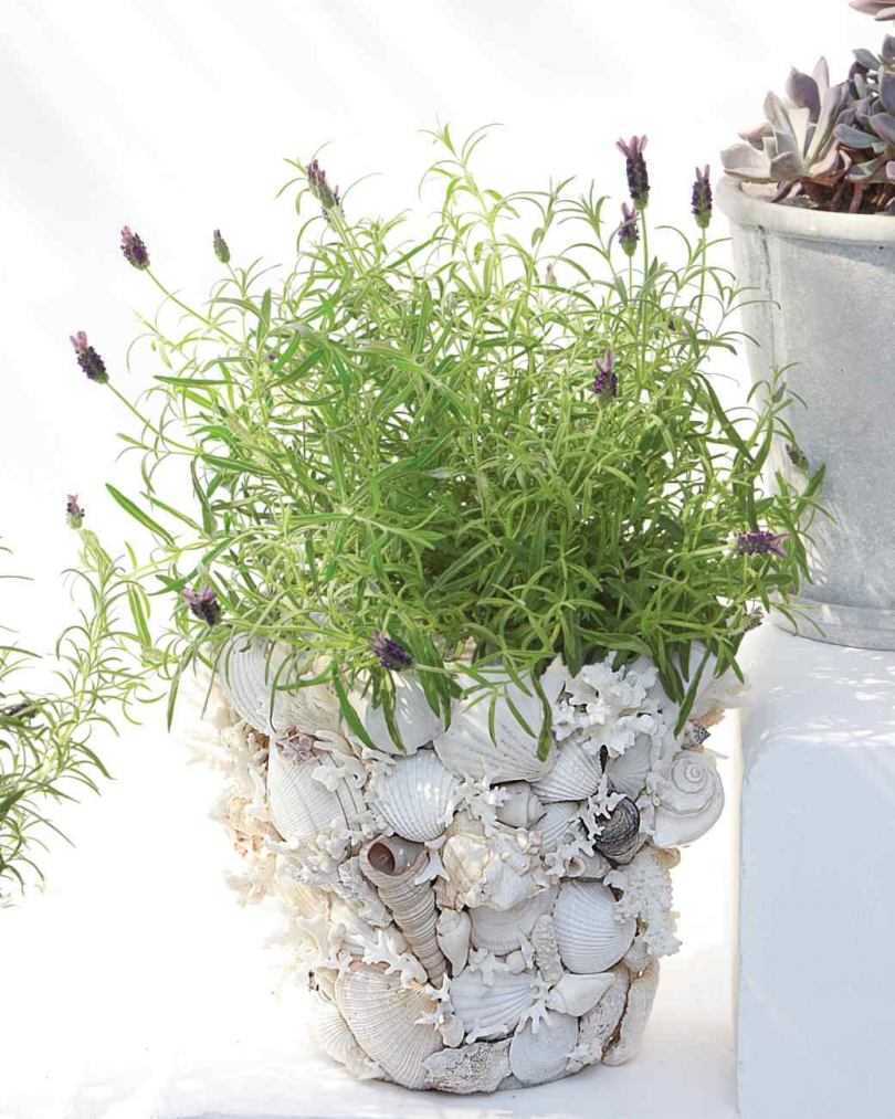 К цветочному горшку можно приклеить бусинки разных цветов и форм, которые разбавляют камешками, пуговицами, ракушками, стразами, кусочками пластмассы или стекла.