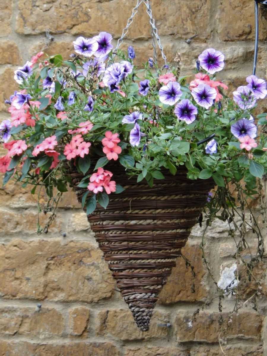 Желание украсить цветами не исключительно наземную часть, но и верхние ярусы участка привело к популярности подвесных вариантов горшков. В таком положении самые подходящие цветы для кашпо – свисающие. Именно ниспадающая цветочная масса создает интересный декоративный эффект.