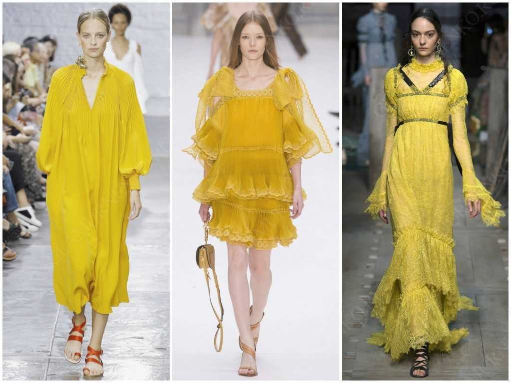 Идеи для модных образов в цвете «Желтая примула» можно черпать в коллекциях Dries Van Noten, Gucci, Salvatore Ferrogamo, Emilio Pucci, Mulberry, Tibi, Erdem, Chloé и др.