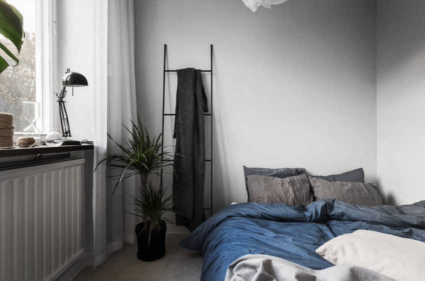 Главное при оформлении интерьера спальни в скандинавском стиле — большая кровать, которую можно удобно разместить даже на 10 кв м.