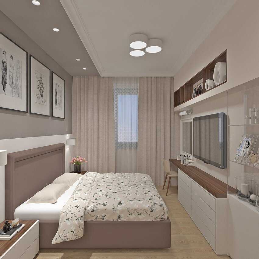 Такая многозадачность потребует дополнительных маневров как в размещении кровати, особенно двуспальной, так и наложит ограничение из-за площади в выборе стиля и цвета. Интерьерных решений для маленьких спален довольно много, так же как и фото, но располагающий к отдыху дизайн будет иметь: