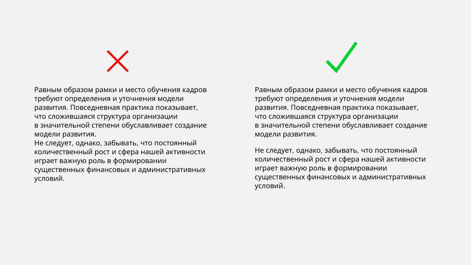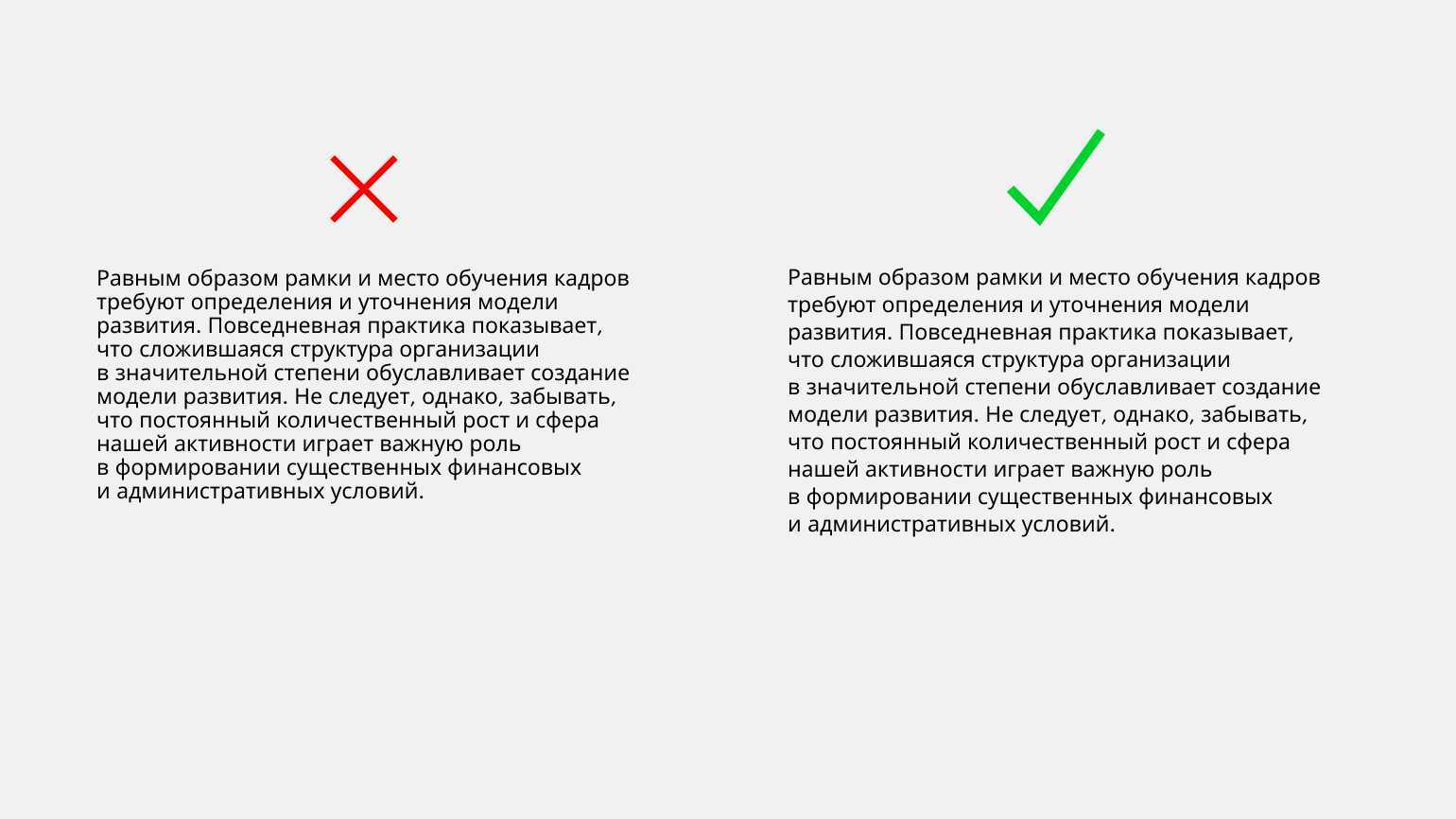Если рассматривать целый абзац, то здесь ситуация усложняется. В уравнении появляется интерлиньяж — межстрочное расстояние, которое должно быть больше или равно расстоянию между словами. Кстати, хороший интерлиньяж можно подобрать простой формулой — кегль умножить на 1,3: