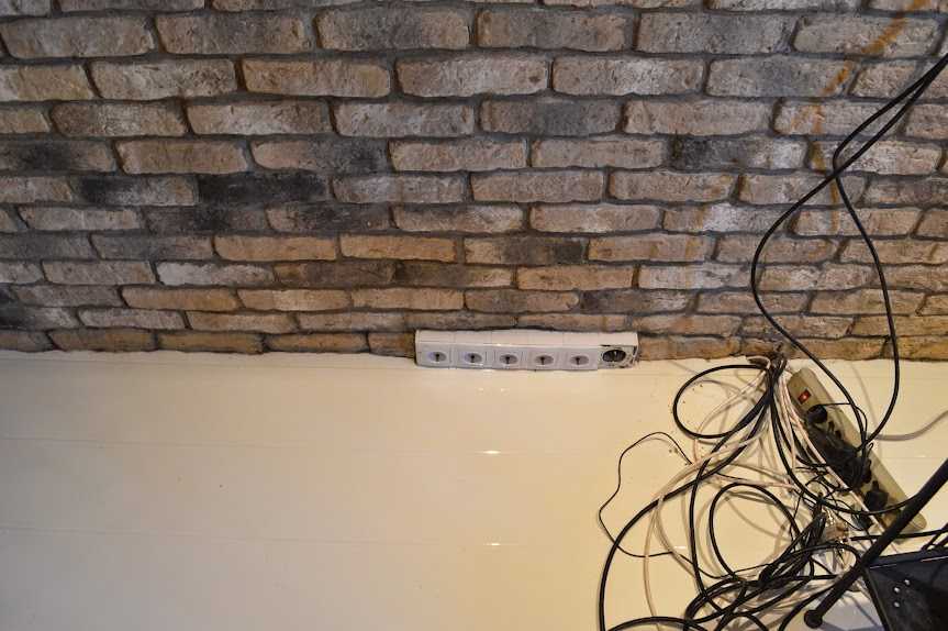 На следующий день к полдню добиваю. Остется поджать последний ряд ламината камнем. Но сначала два блока розеток, которые будут под кроватью