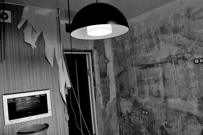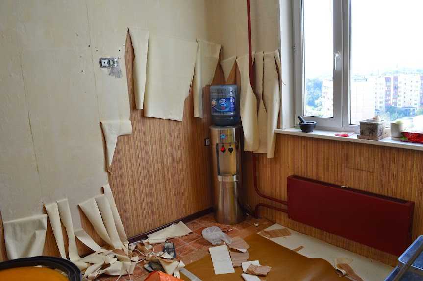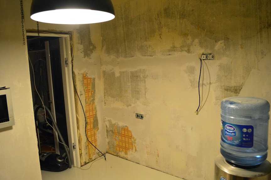 Итак, решено было начать с самого сложного. 1.КУХНЯ В первую очередь предстояло снять все обои и протянуть новую проводку к розеткам.