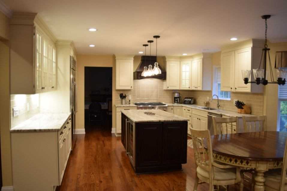 В кухонном интерьере стиля американская классика максимально используется натуральное дерево: в отделке потолка, пола, стен, в изготовлении кухонной мебели.