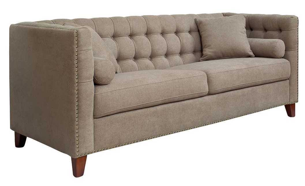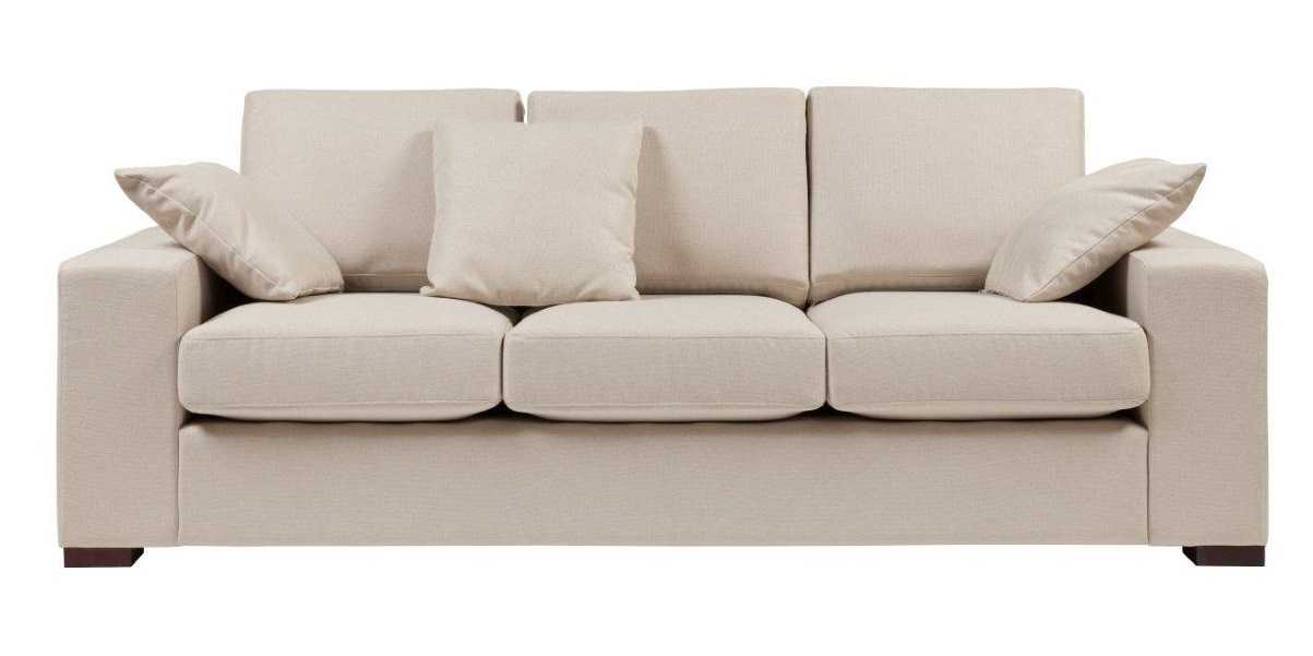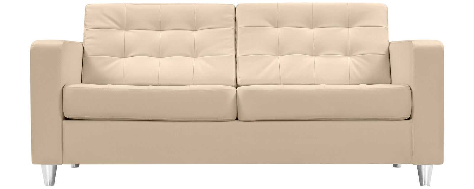 - Прямой. Такую конструкцию легко вписать в любой интерьер. Производители предлагают широкий выбор размеров. Самая компактная модель – 1,7 метра, на ней легко разместить двух человек. Для просторных гостиных и помещений, в которых организован домашний кинотеатр, подходят четырехместные модели. За счет светлого оттенка они не будут выглядеть громоздко.