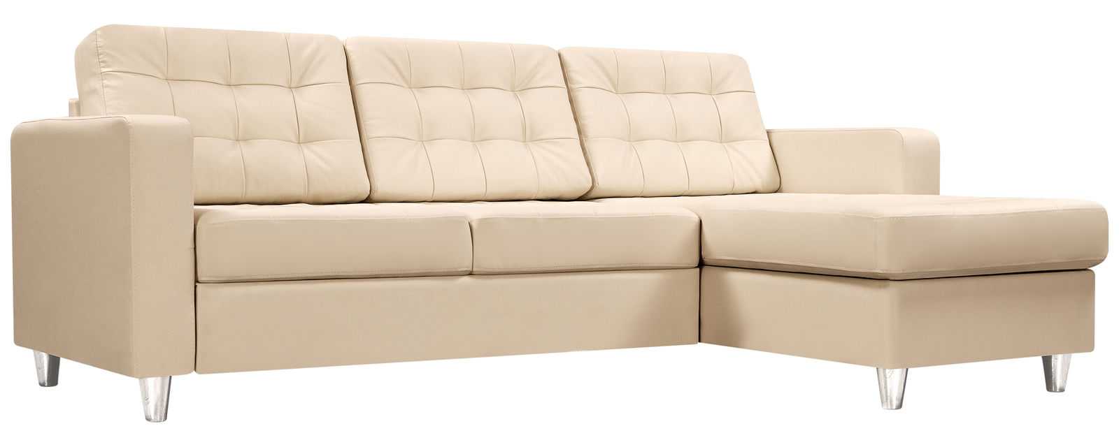 - Угловой. Бежевый угловой диван одинаково гармонично смотрится в просторном и маленьком помещении. Модель позволяет задействовать углы комнаты, освобождая дополнительное пространство. Мебель такой конструкции может быть комфортным спальным местом.