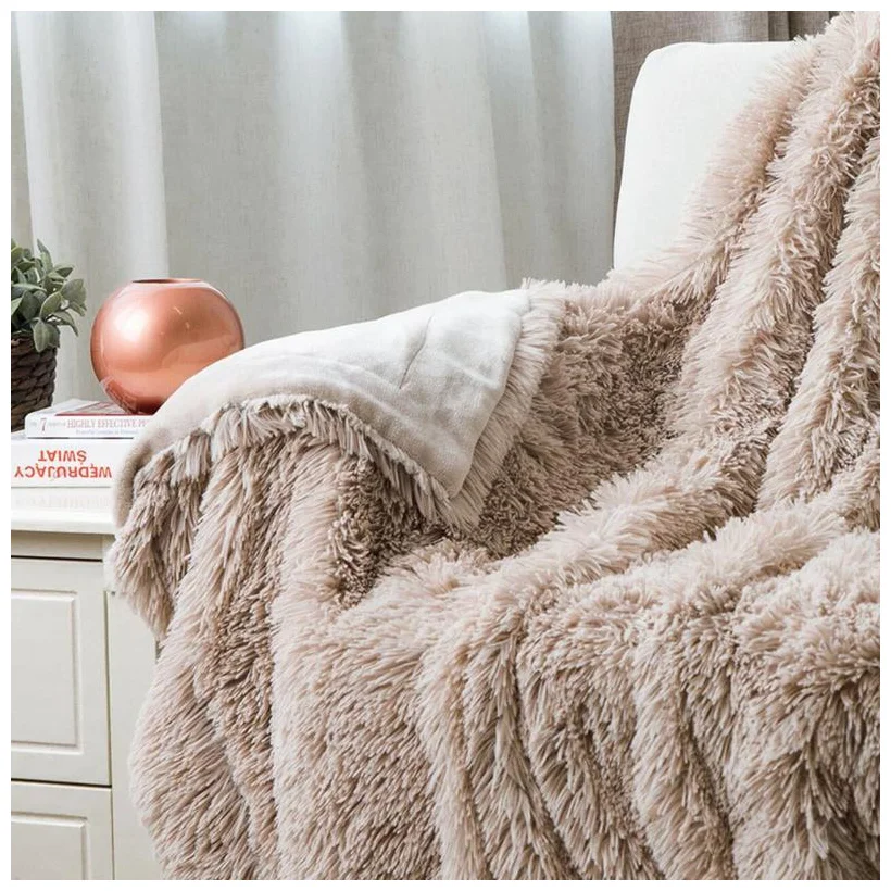 Плед из искусственного меха внешне очень похож на натуральный. Не выгорает, хорошо пропускает воздух. Однако со временем ворс накапливает электричество и пыль. Имеют среднюю стоимость.