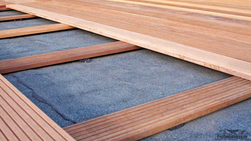 Перед монтажом деревянные элементы покрывают специальными защитными пропитками. Это убережет их от проникновения влаги и появления грибка. В первую очередь, это касается чернового слоя досок и лаг.