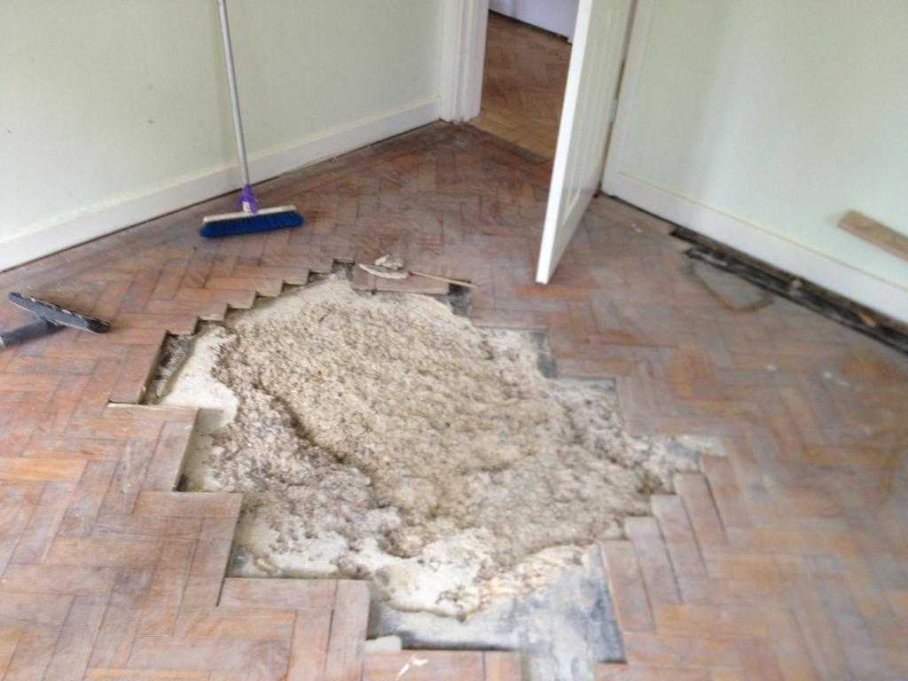 Если перед вами встала задача отремонтировать деревянный пол в квартире, придется действовать по следующему алгоритму: для обнаружения прогнивших досок следует пройтись молотком по всей поверхности. Так вы обнаружите дефекты. Если услышали глухой звук — это говорит о наличии гнили. Об этом вам поведают ржавые гвозди в половицах. От объема повреждений будет зависеть объем работ. Проще всего заменить верхние половицы.