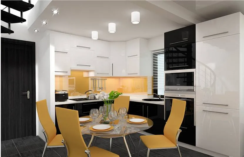 Хай-тек будет уместен в кухнях разного размера, хотя в маленьких помещениях обилие черного цвета необходимо использовать очень осторожно. В качестве материала отделки хорошо будут смотреться керамогранит, дерево или камень – природный или искусственный