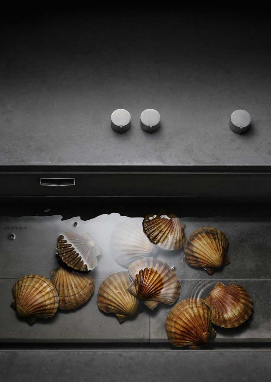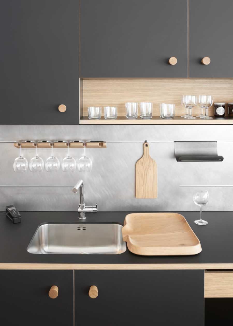 Преимущество нержавеющей стали в том, что она дешевле и прекрасно сочетается с любым материалом. Однако такие раковины могут выглядеть слишком просто. Дизайнер Джаспер Моррисон решил эту проблему, накрыв изделие деревянной крышкой.