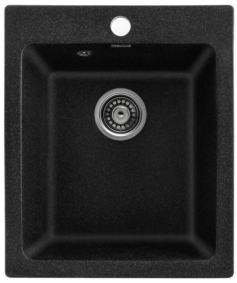 Наш рейтинг лучших гранитных моек открывается моделью Gerhans A10. Выполненная в черном цвете, однокамерная, она прекрасно дополнит любую кухню — как темную, так и белую. В случае последнего это дает большой контраст. Это разновидность встраиваемой мойки, а это значит, что после установки она будет образовывать однородную поверхность вместе с окружающей столешницей.