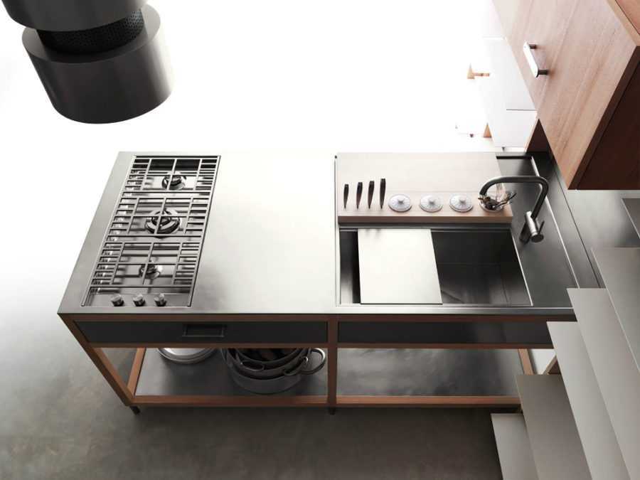 Они могут быть встроенными в кухонный пенал или островок. Из материалов последним трендом является чеканная медь. Она превосходно выглядит и подходит под любой стиль.