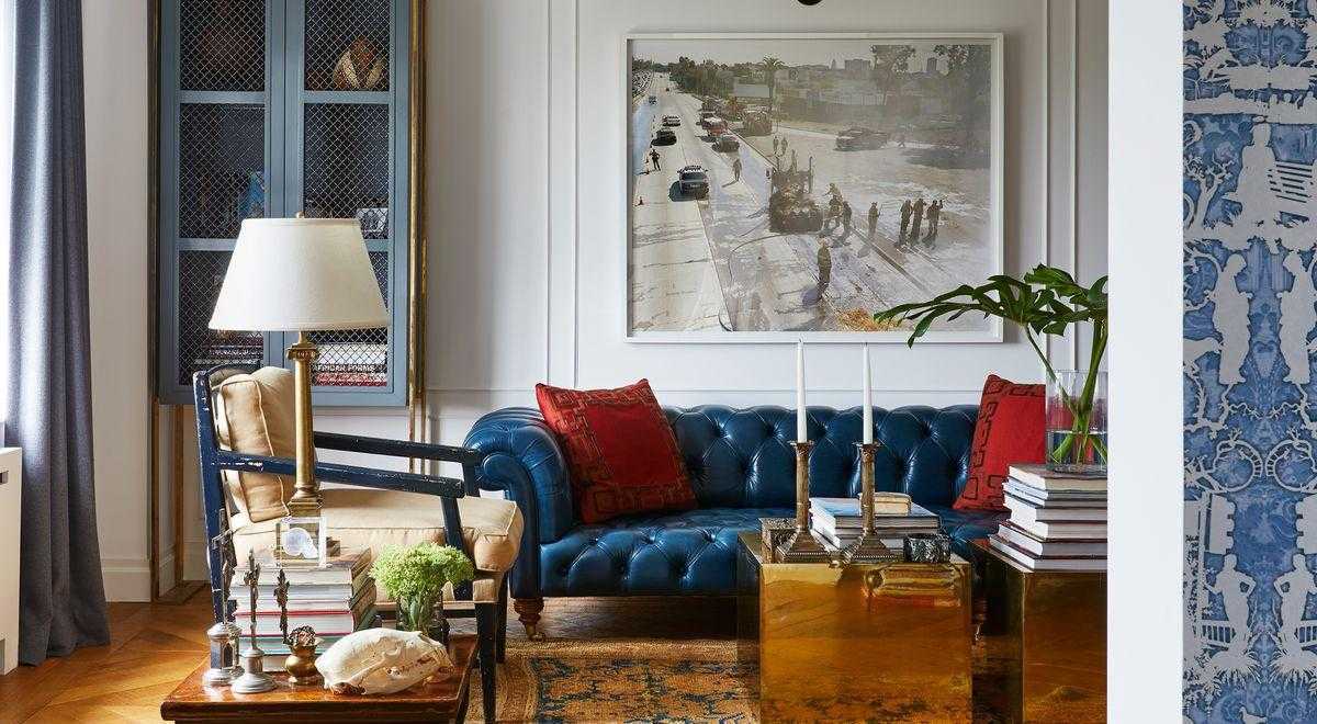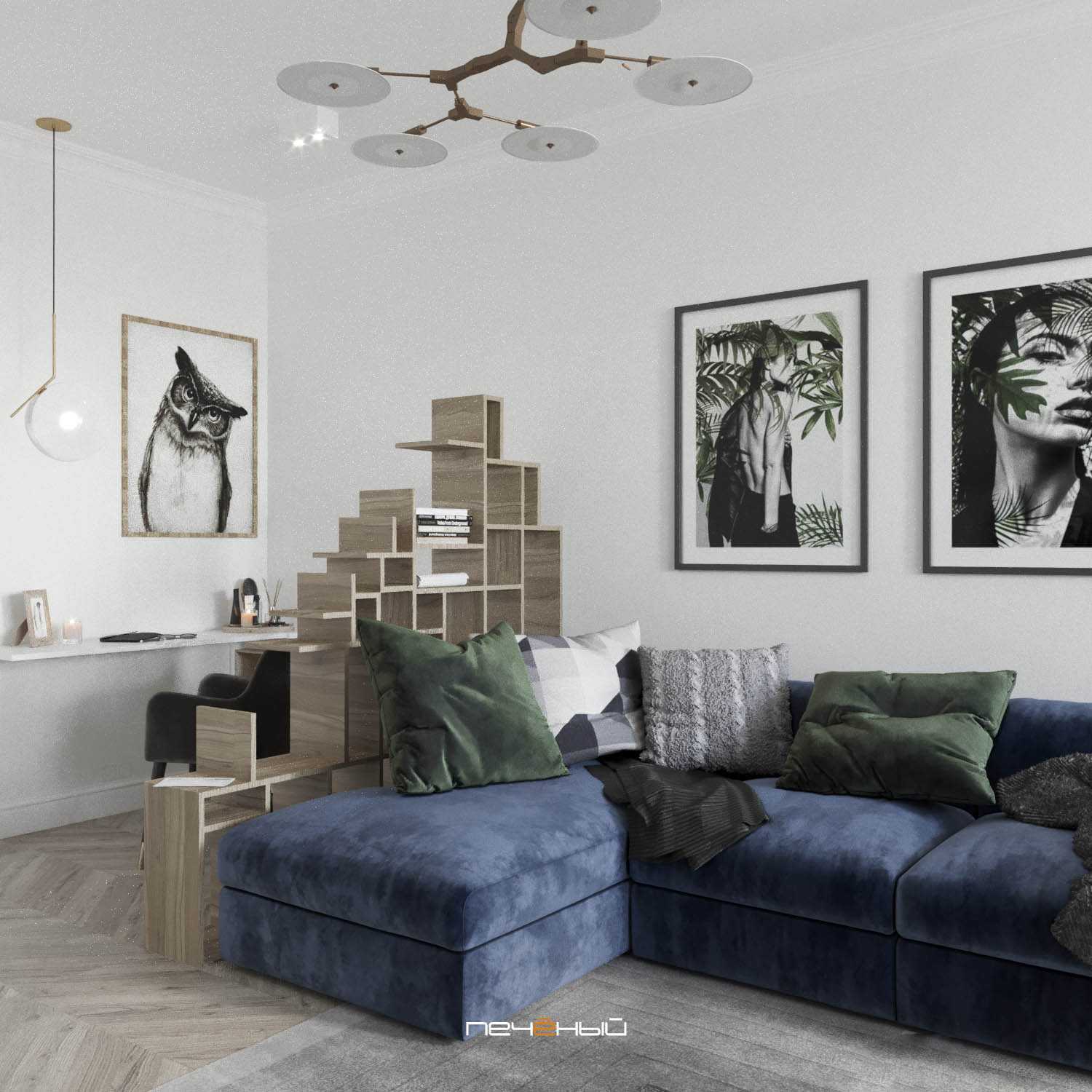 Очень важно, чтобы все элементы интерьера гармонично сочетались. Синий диван – очень яркая деталь, притягивающая взгляды