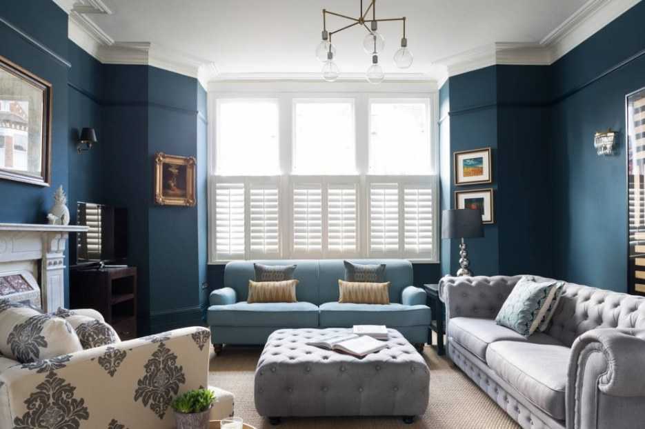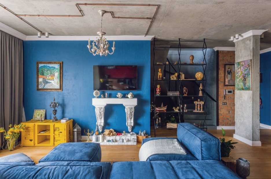 Вариации комбинирования отделки стен синего цвета: фото интересных решений