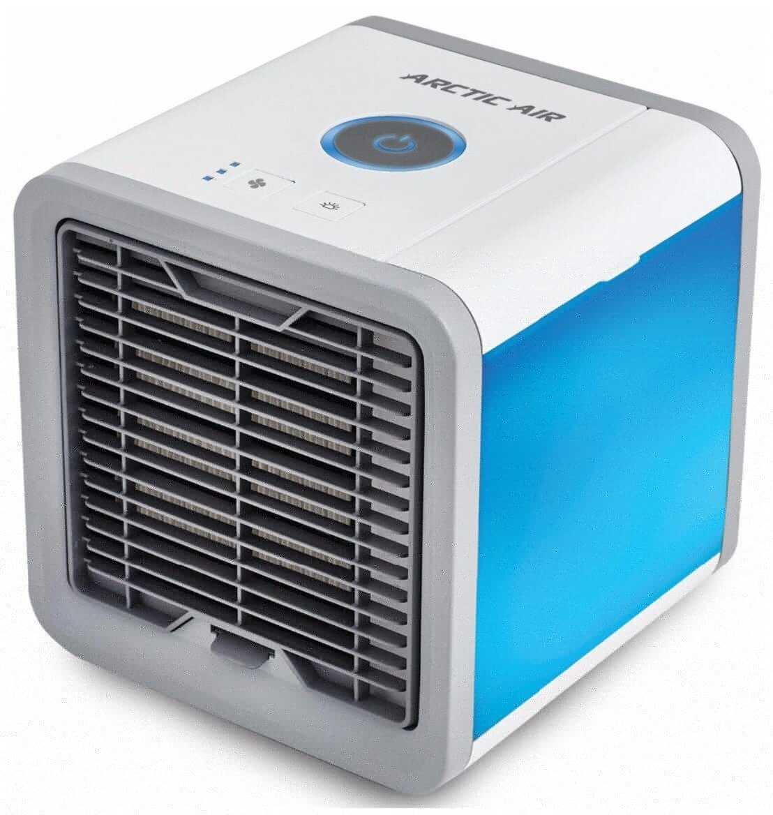 Удобный и компактный кондиционер «Арктика» 4 в 1 с подсветкой, которая имеет семь оттенков. В комплекте есть переходник, поэтому устройство работает как от розетки, так и от ноутбука или портативного зарядного устройства. Есть функция увлажнителя, для этого имеется специальный резервуар для воды. Многие пользователи в своих отзывах хвалят эту функцию, но отмечают, что вода быстро испаряется.