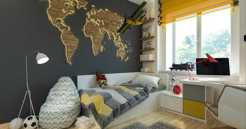 важно, чтобы кровать соответствовала площади комнаты и после её установки дети не испытывали дискомфорт. В помещении должно оставаться пространство для игр и занятий спортом;