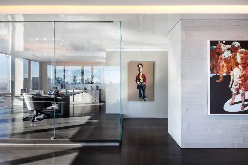 Современный интерьер квартиры со стеклянными межкомнатными перегородками