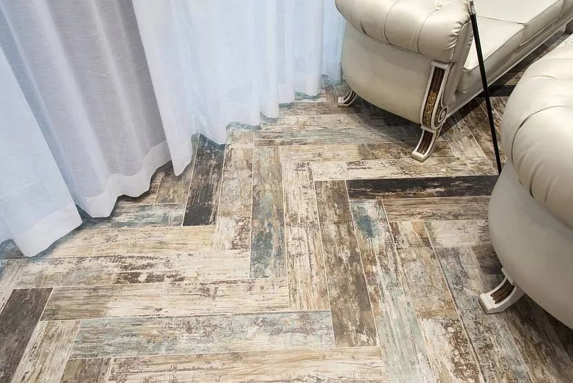 Такой рисунок достигается укладкой досок под углом 90 градусов друг к другу, для этого нужно выбирать специальные коллекции с замковыми системами, позволяющими крепить торец доски к боковине.