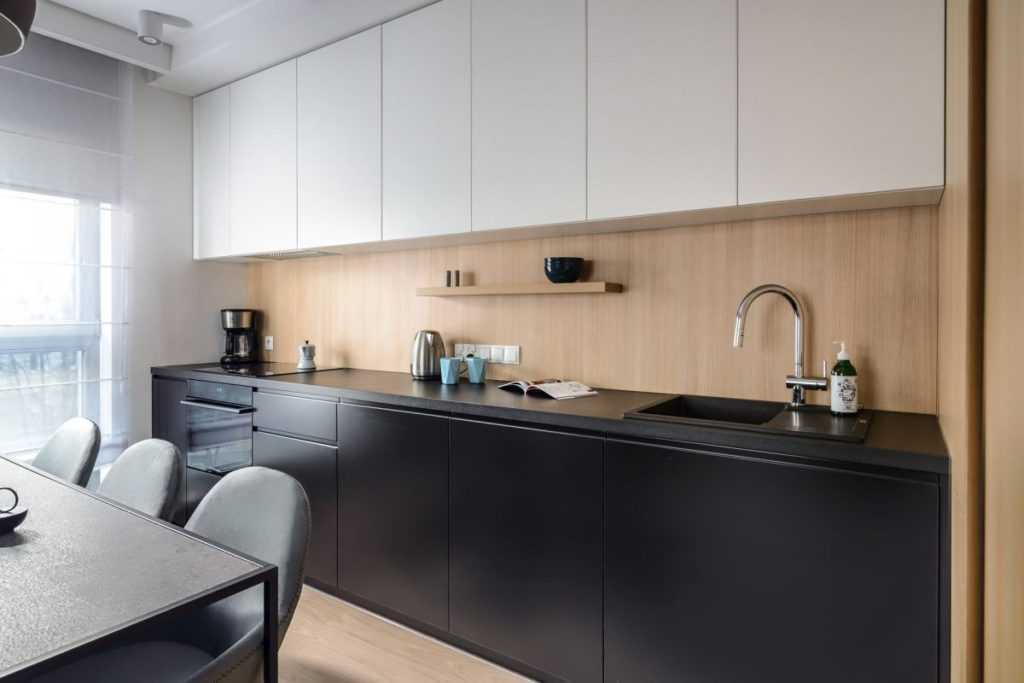 Черный столь же универсален, как белый, но менее распространен в интерьерах. Многие люди избегают этого оттенка, особенно в случае небольших кухонь, которые в темноте могут выглядеть оптически меньше, чем они есть на самом деле. Поэтому белый цвет чаще используется в небольших кухонных интерьерах, где не хватает места.