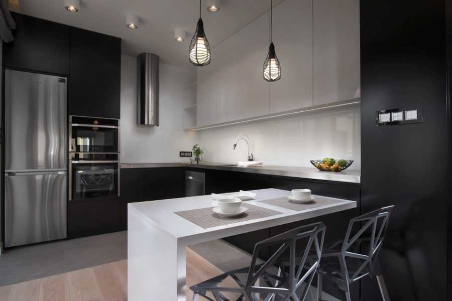 Однако для любителей черного у нас есть идеальное решение, а именно использование черно-белой кухонной мебели в качестве основных элементов оборудования. Такой контрастный вариант кухонного гарнитура не только будет выглядеть интересно, но и в небольшой степени исполнит мечты людей, которым нравятся темные интерьеры.