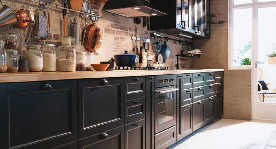Черный кухонный гарнитур — как подобрать остальную мебель и отделку под него?