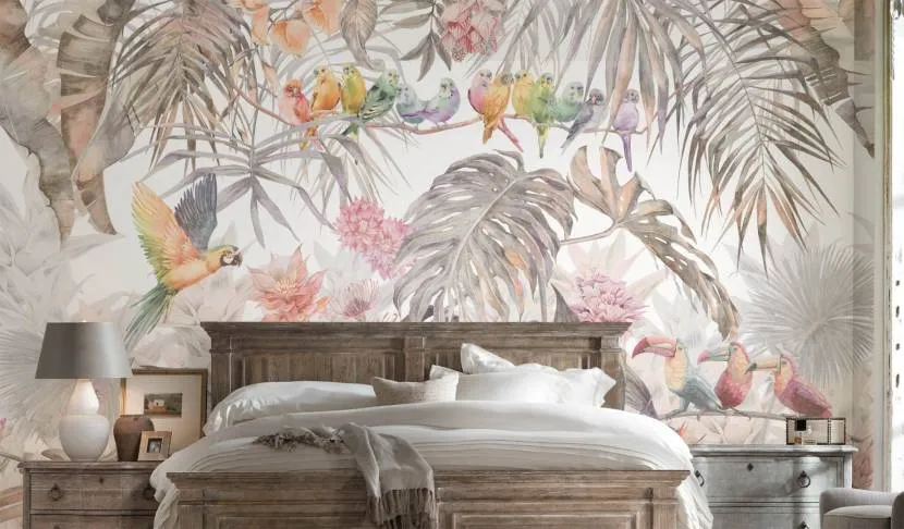 Текстильные. Такой вариант является наиболее дорогостоящим, а каждый метр делается на заказ. Изображение можно нанести на натуральную ткань, например, шелк, лен, хлопок. Благодаря текстуре и мягкости подходят для отделки спален и гостиной;