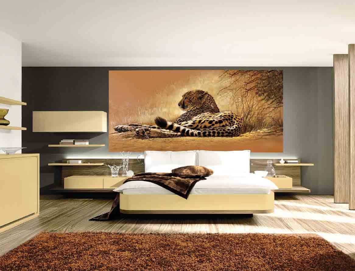 Изображение с дикими животными, такими как тигры, львы, медведи, леопарды, волки или носороги, уместнее размещать в интерьере гостиной или рабочем кабинете.