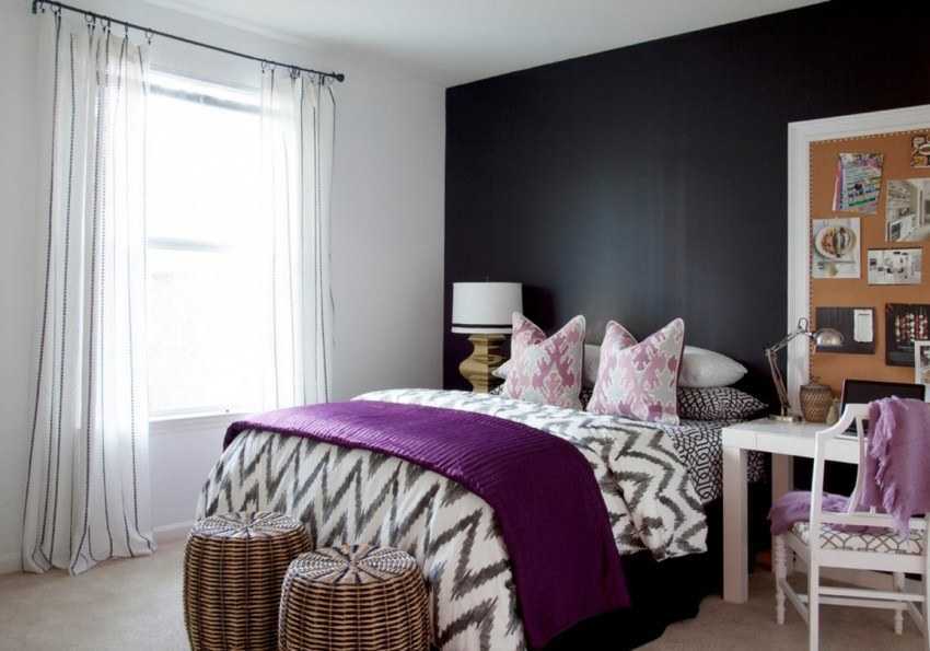 Стены окрашивают в насыщенные, но не кричащие цвета: темно-зеленый, песочный, коричневый, розовый, голубой, серый.