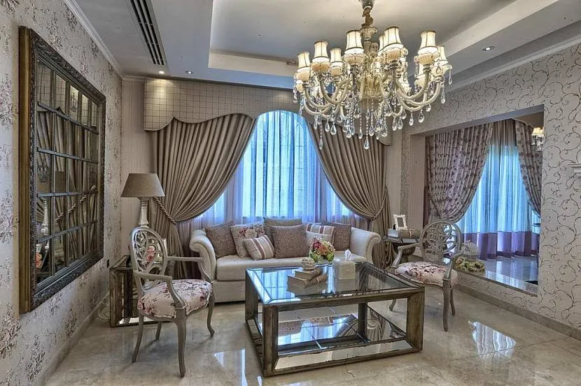 Не нужно бояться смешивать не совсем совместимые фактуры, главное, чтобы они идеально сочетались по цвету. Важную роль играют также кружевная отделка штор и покрывал, хрустальные украшения люстр, светильников и бра, бронзовые и медные детали в ванных и позолоченные рамы для картин.