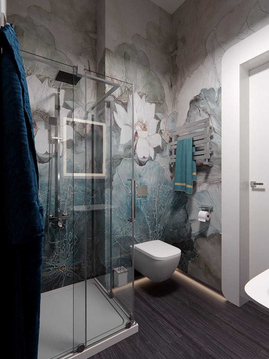 Крупный рисунок стен в ванной комнате