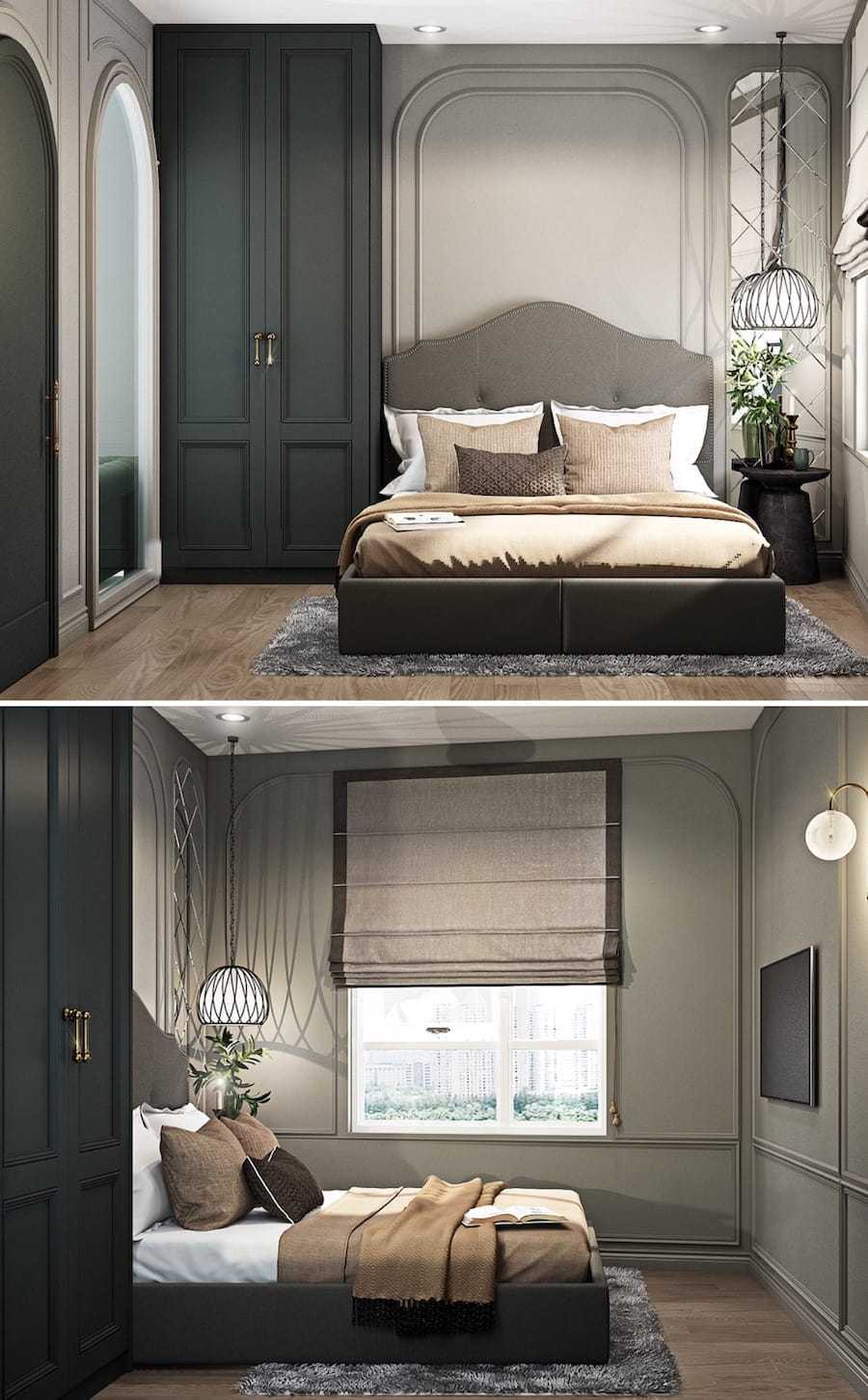 Большинство людей предполагают что в маленьком помещении мебель и предметы декора должны быть небольшими. А вот и нет, опытный дизайнер посоветует разместить объемный декоративный элемент в маленькой комнате. Главное чтобы он сочетался с мебелью и вписывался в общий дизайн помещения. Например, в небольшой спальне будет уместен массивный шкаф в стиле 50-х годов.