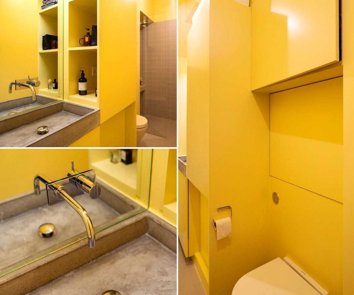 Дизайнеры использовали отражающие поверхности везде, где это смотрится уместно: на шкафу, рядом с диваном и даже окнами, чтобы удвоить количество естественного света, проникающего в квартиру. При этом, им удалось грамотно сочетать зеркала с матовыми поверхностями, во избежание эффекта зеркального лабиринта.