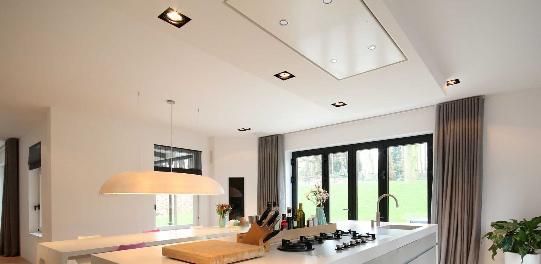 Встраиваемые модели скрываются в потолочном пространстве. Они органично смотрятся в любом интерьере за счёт компактности и универсальности. Чаще всего, они выступают в качестве вспомогательного освещения.