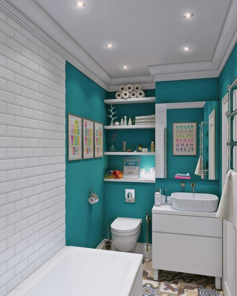 Использование в отделке небольшой ванной ярких или очень темных цветов нежелательно — темные стены сделают помещение неуютным, визуально более низким и узким. Слишком яркие цвета будут раздражать, создавать чувство тревоги и дискомфорта.