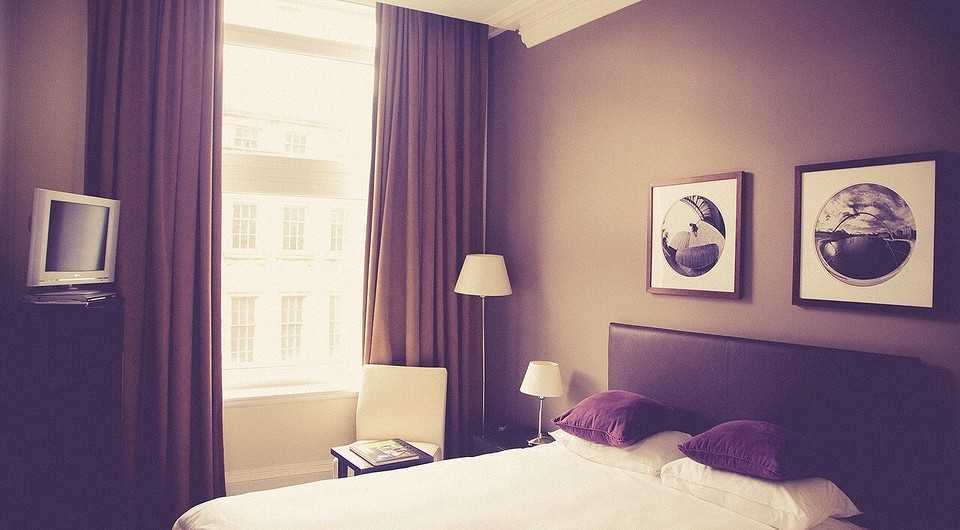 Проще всего занавесить оконный проем шторами. Ткань и количество ее слоев выбирают исходя из того, насколько светонепроницаемым должен получиться занавес.