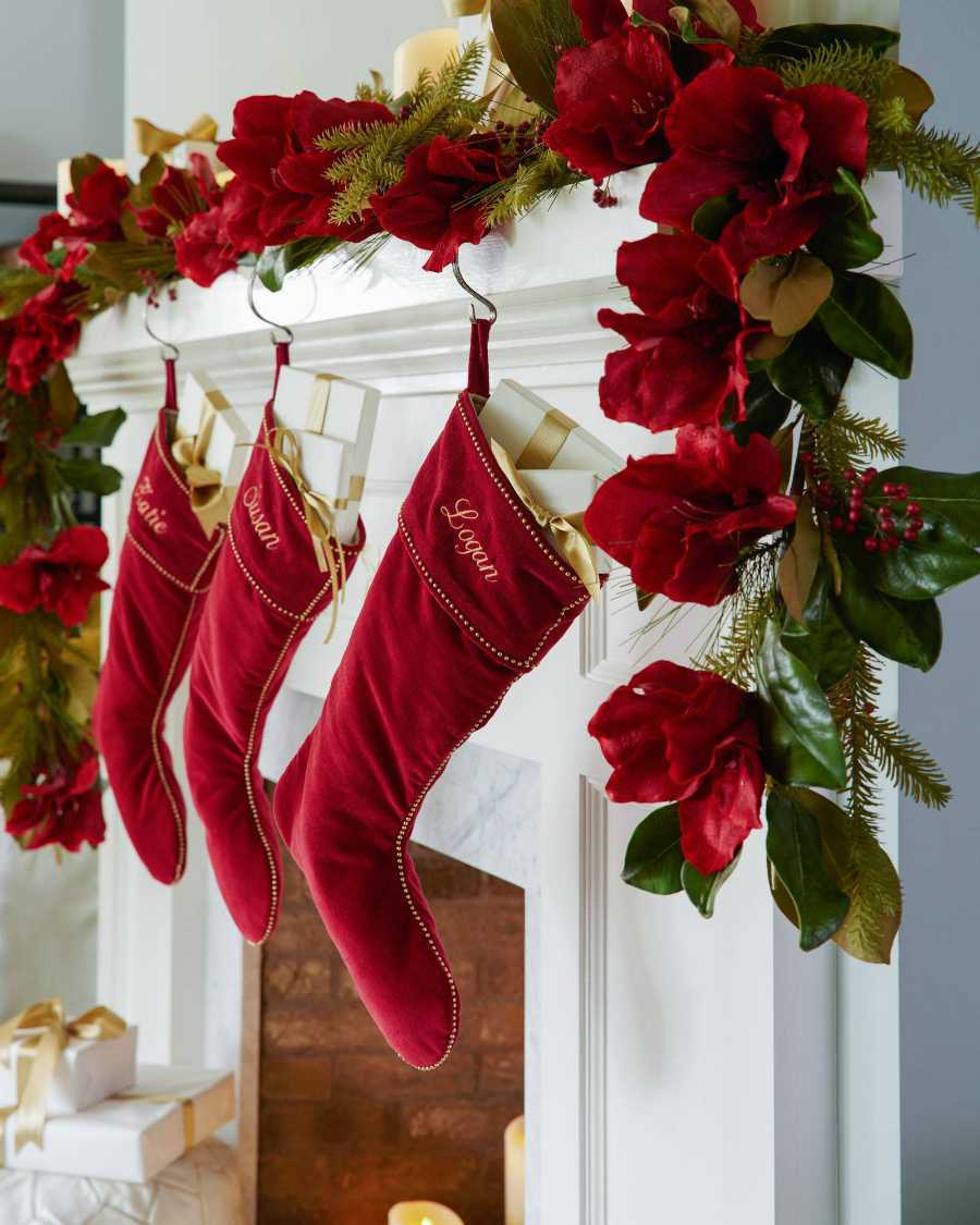 Искусственные цветы амариллиса, как часть праздничного венка, красиво смотрятся в новогоднем украшении камина…