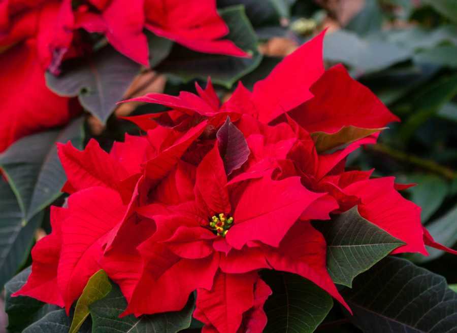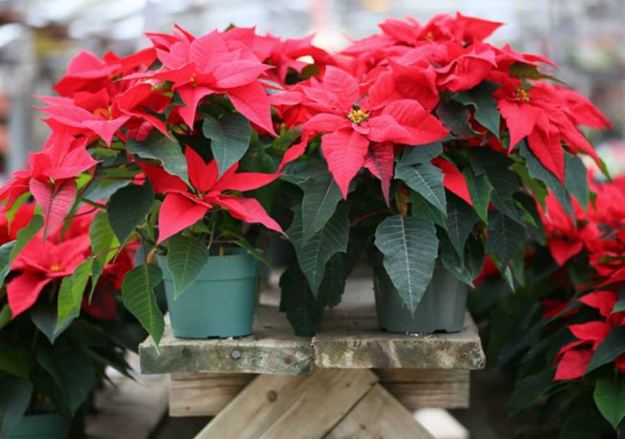 Пуансеттия — пожалуй, самое яркое зимнее растение. В дикой природе она вырастает до 1-3 метров высотой. Ярко-красные прицветники, которые многие ошибочно считают цветами, встречаются чаще всего. Но бывают и других цветов — белые, розовые и бледно-зеленые.