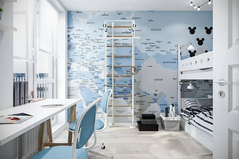 Существует много способов выбрать место для сна и найти удобное расположение для стола школьника или развивающих игр. Дети ведут активный образ жизни, и шведская стенка или турник могут стать спортивной зоной. Стоит разделить пространство на зону для отдыха и игр, используя мебель, перегородки, освещение. Главное, чтобы цветовая гамма всего помещения была выдержана в одном стилевом оформлении.