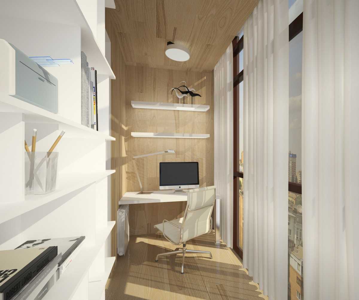 Что может быть лучше, чем сделать из лоджии настоящий рабочий кабинет: разместить здесь небольшой компьютерный или письменный стол. Работать на свежем воздухе легко и приятно, естественное освещение не вредит глазам. В углу даже самой маленькой лоджии можно повесить полки с книгами и дисками. Если имеется большой подоконник – в качестве рабочей поверхности можно задействовать и его.