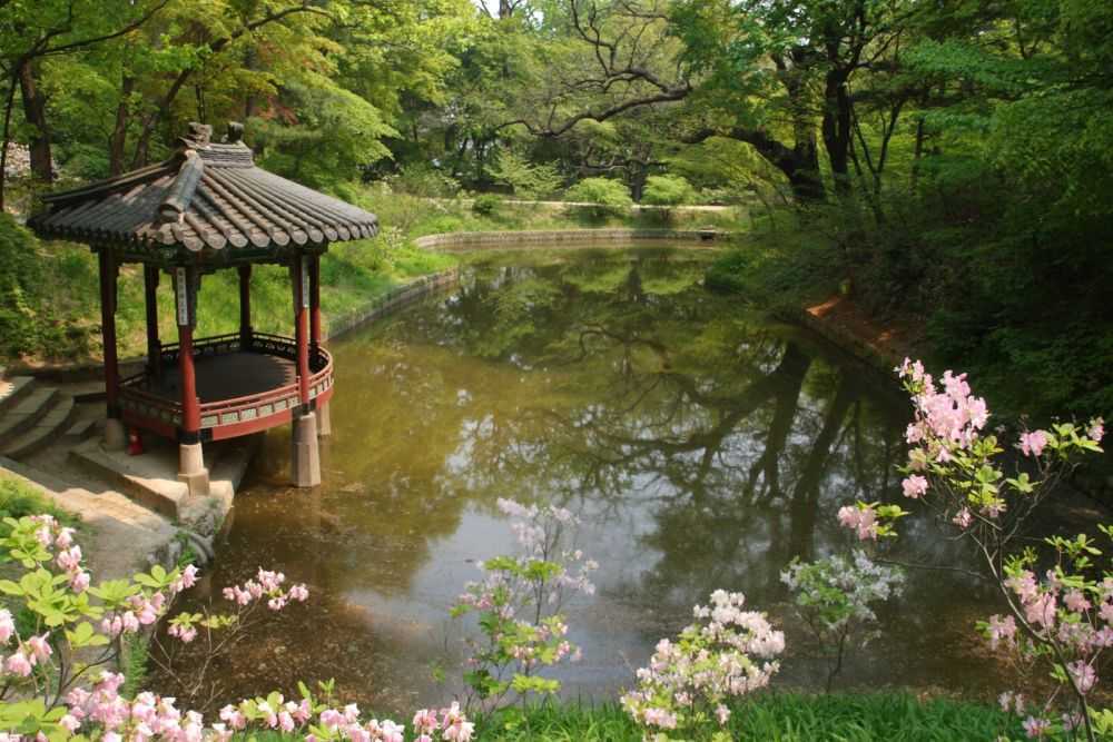 Жемчужина Чхандоккуна – парк, который находится за дворцом. Сад, доступ в который открыт только королевской семье и дворец, – единый комплекс. Сад постепенно поднимается в гору, сливаясь с лесом. Здесь выращивают 25 000 разных пород деревьев.