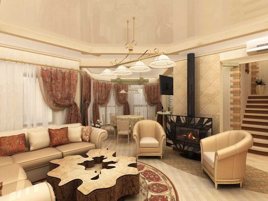 Гостиная в коричневых тонах в стиле эклектика
