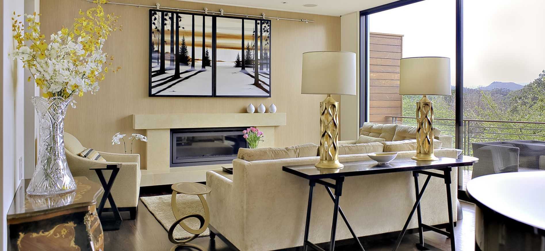 - Если в ней есть настоящий или искусственный камин, поставьте на него красивую вазу средних размеров.